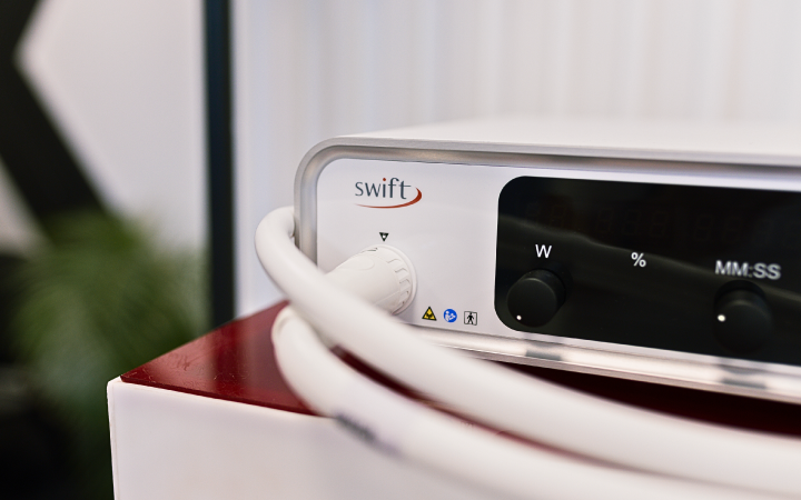 Podczas zabiegu pacjent odczuwa krótkie, punktowe ciepło – trwa ono dosłownie kilka sekund, a sama procedura powtarzana jest kilkukrotnie podczas jednego zabiegu SWIFT. Nie trzeba się przygotowywać ani niczego znieczulać. Po zabiegu nie ma ran ani opatrunków.